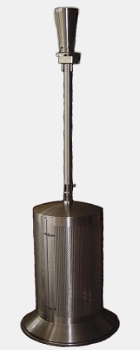 The headhigh torch is suitable for outdoors and for high indoor rooms. With a supporting foot stuck into the ground or fixed on the wall – according to your wishes. The gas cartridge is in the upper part of the torch and can be changed in just a few easy steps. Here you can see the example in stainless steel. The model called Merlin.